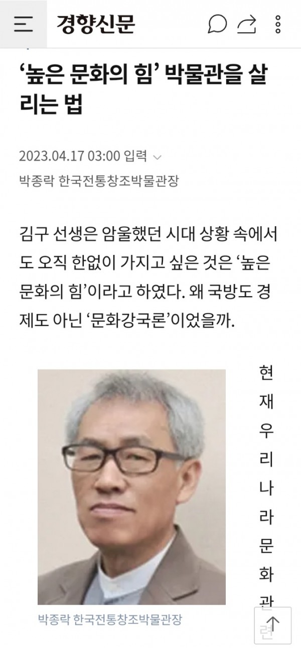 [한국전통창조박물관] '높은 문화의 힘' 박물관을 살리는 법(기고문)