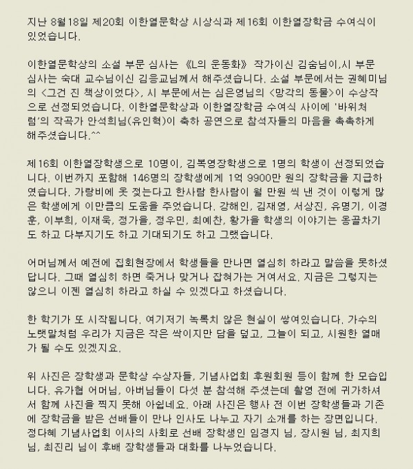 [이한열기념관] 한열사랑 소식