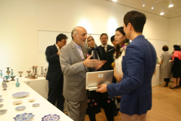 산 타헤리안 이란 대사와 내빈들이 세계다문화박물관 김윤태 관장의 비콘을 연동한