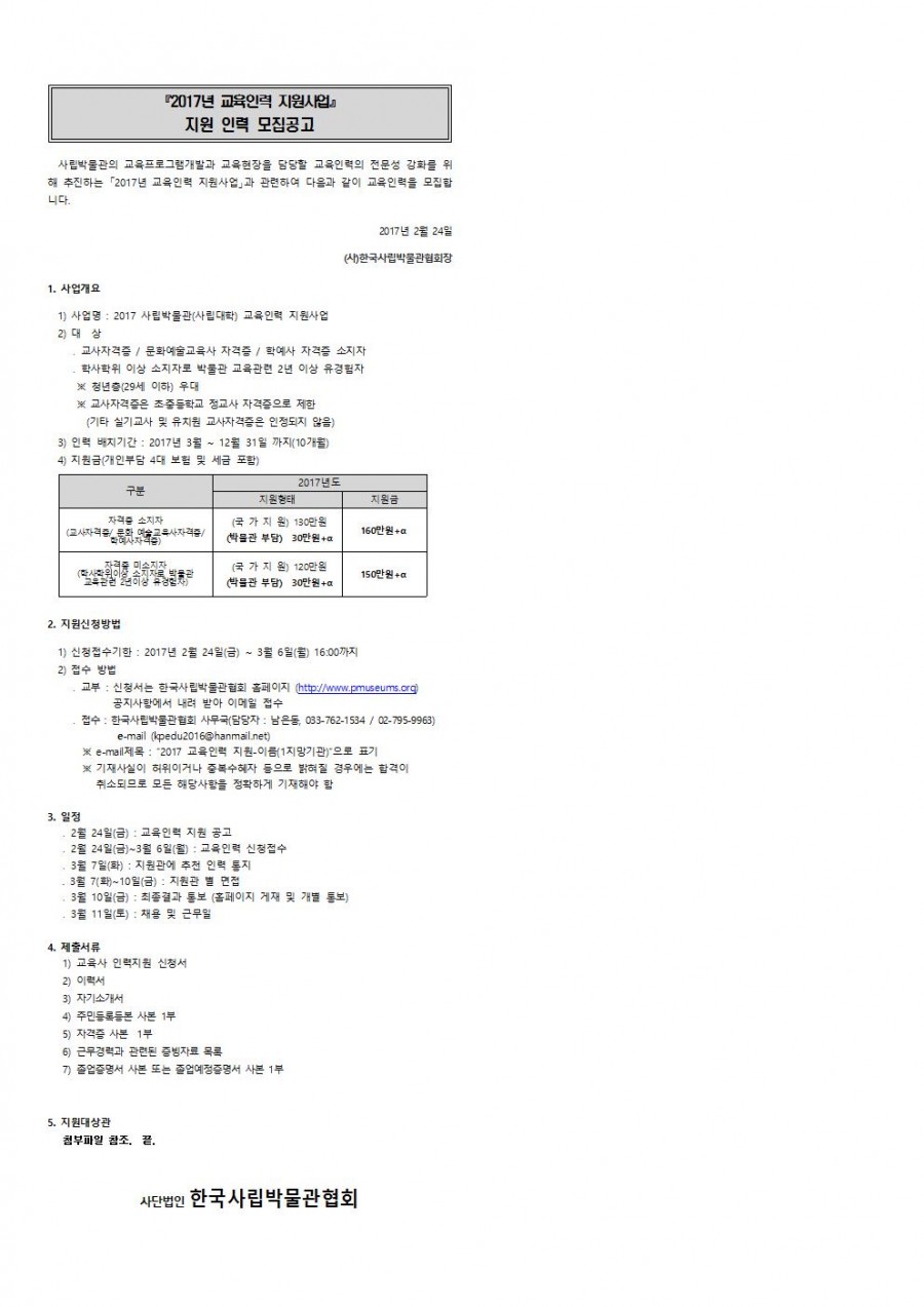 2017년 교육인력 지원사업 지원 인력 모집 공고