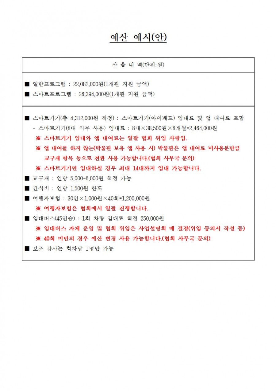 2015년 박물관 '길 위의 인문학' 사업 관련 추가 공지(예산 작성 시 참고 사항) 페이지 정보 작성자 관리자 작성일15-03-13 15:13 조회41,464회 댓글0건 관련링크 이전글 다음글 목록 본문 2015년 박물관 '길 위의 인문학' 사업 지원신청서 작성하시느라 노고가 많으십니다. 올려드린 예산안 공지 내용은 지출 예산안 작성 시 참고 내용이므로, 각 박물관에서 작성할 예산안과 동일하지 않아도 됩니다. 참고용이므로, 문의사항 있으시면 사무국으로 연락주시기 바랍니다. 033.762.1534 곽다정, 김미영 댓글목록 등록된 댓글이 없습니다. 이전글 다음글 목록