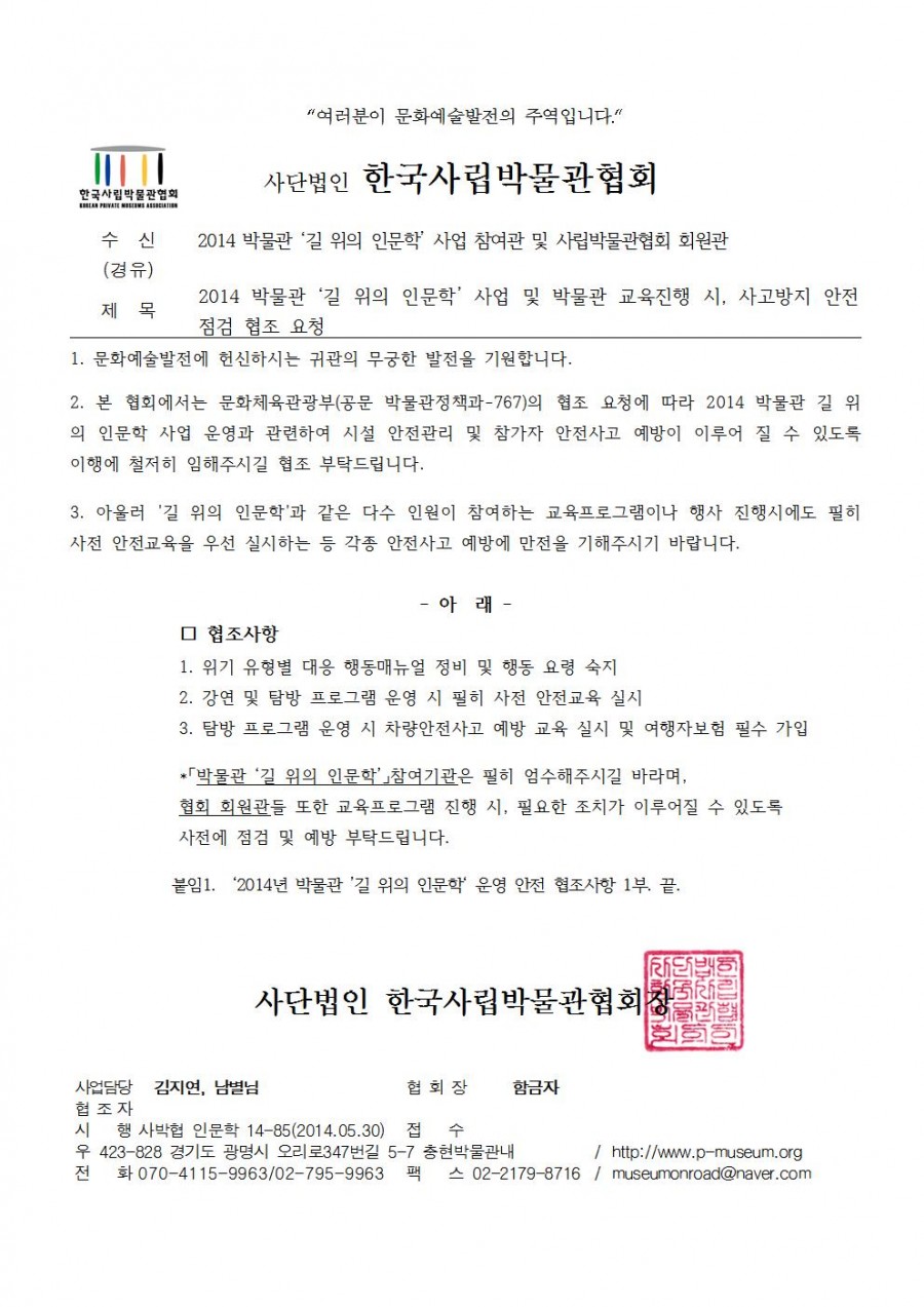14-85 박물관 길 위의 인문학 안전관리 협조요청.hwp