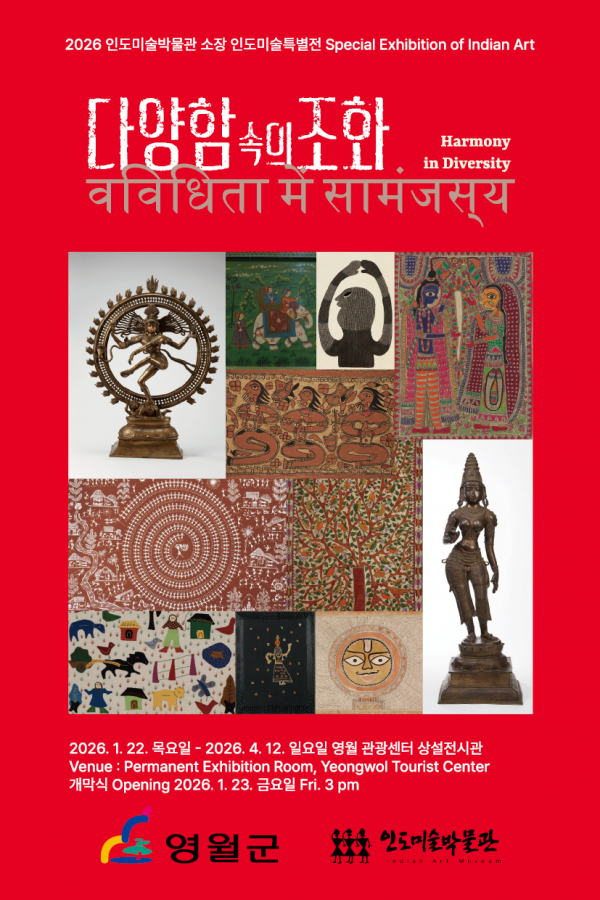 인도미술박물관(관장 박여송)이 2026년 1월 22일부터 2026년 4월 12일까지 인도미술특별전 《다양함 속의 조화》를 영월관광센터(강원도 영월군 영월읍 소재) 상설전시관에서 개최한다. 이번 특별전에서는 인도미술박물관이 소장하고 있는 다양한 회화, 조각, 공예작품들을 전시한다.